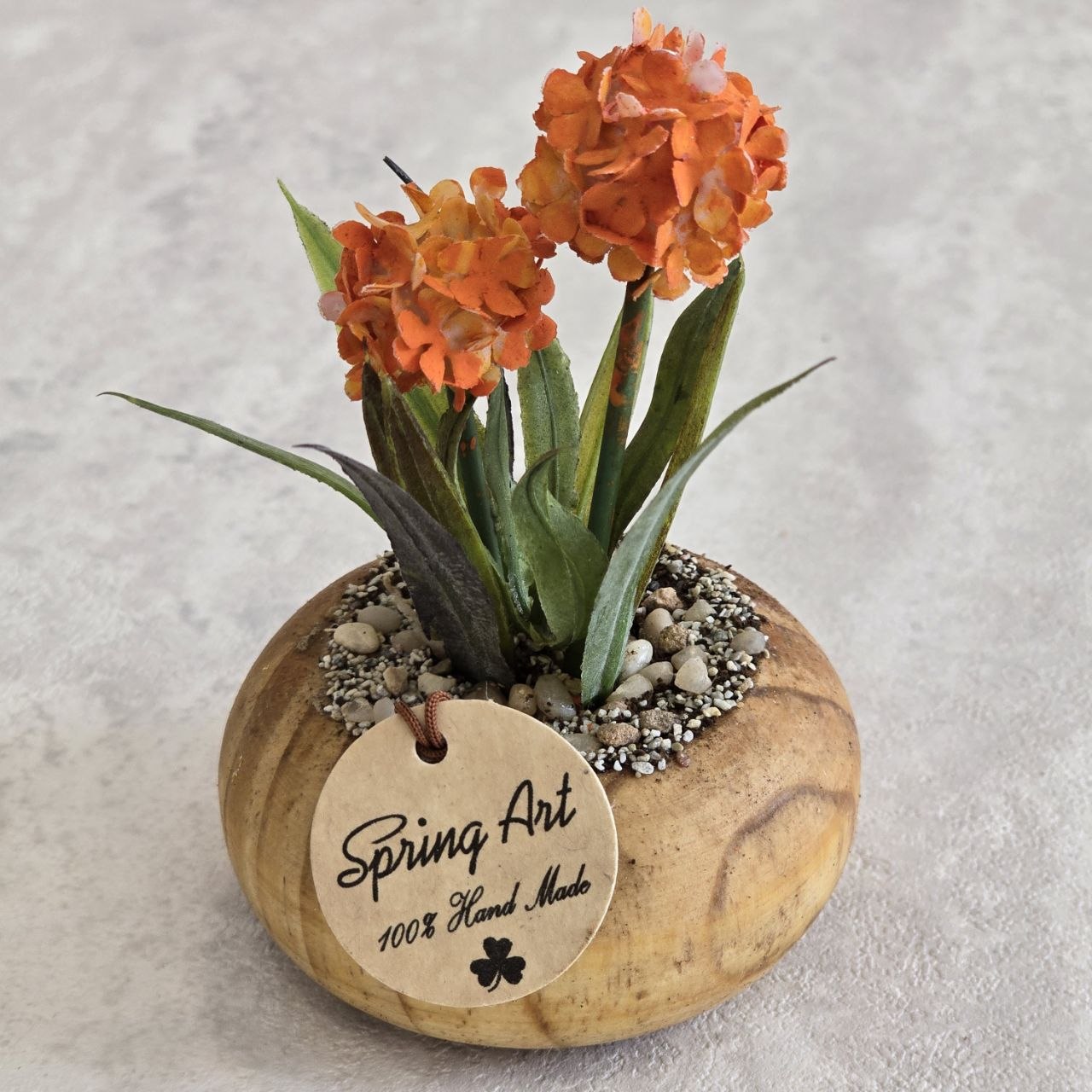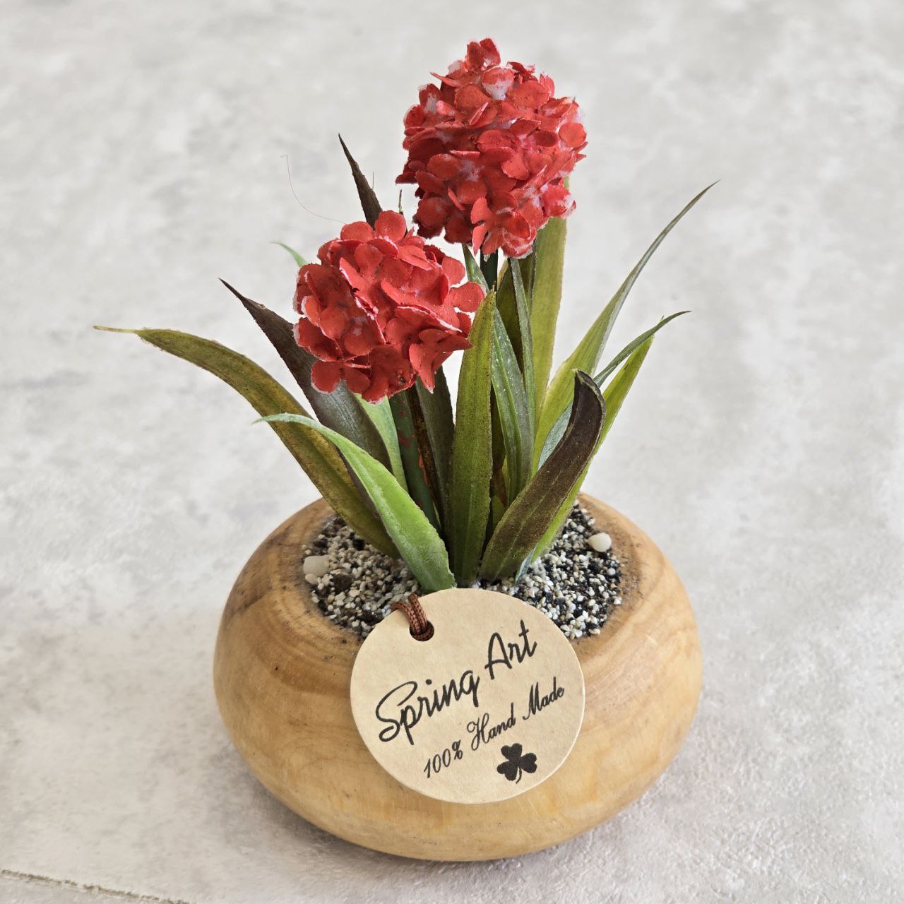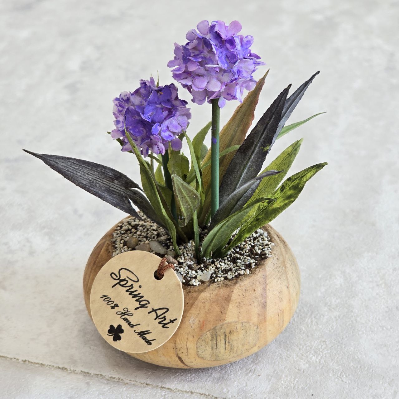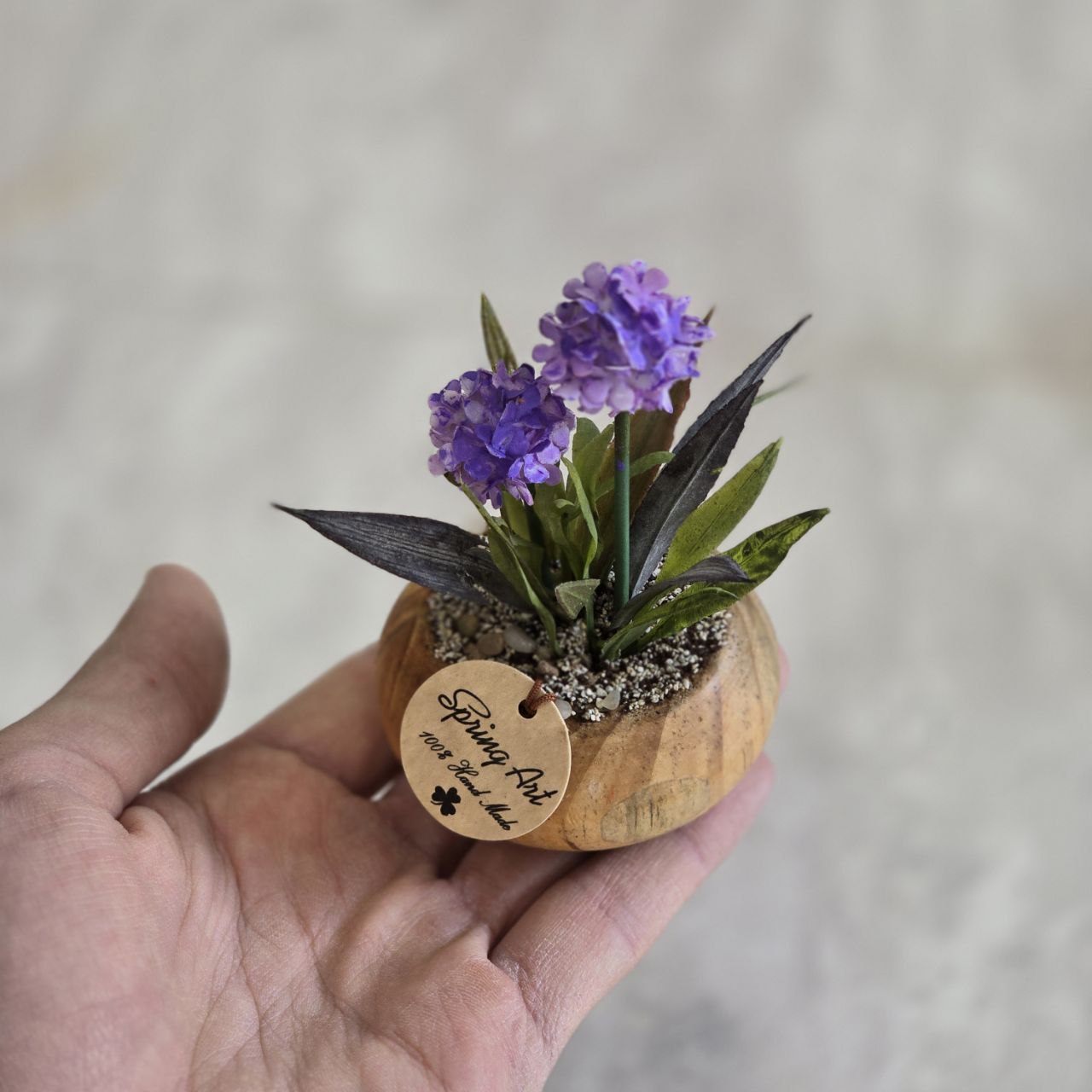 گلدان و گل دکوراتیو هورتانسیا کوچک با ترکیبی از چوب و پلاستیک با کیفیت طراحی شده است و جلوه‌ای طبیعی و زیبا به فضای داخلی شما می‌بخشد. ارتفاع آن ۱۰ سانتی‌متر بوده و به‌خوبی برای تزئین میز، قفسه یا کنار پنجره مناسب است.