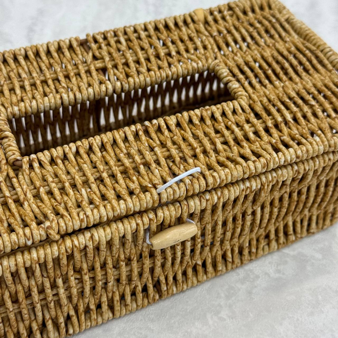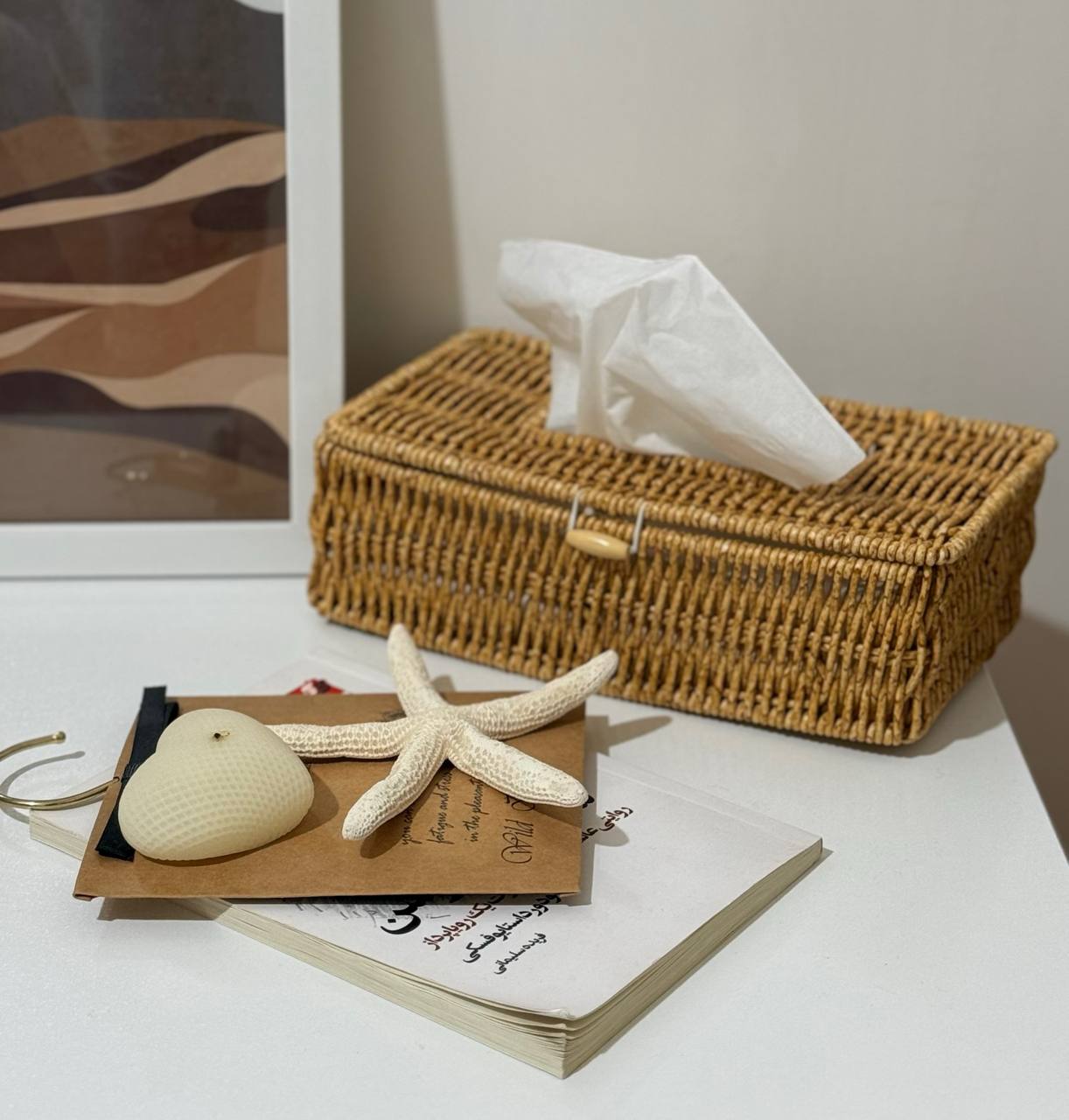 ابعاد مناسب و طراحی کاربردی این جادستمالی، امکان دسترسی راحت به دستمالها را فراهم کرده و کاربری آن را افزایش میدهد. ترکیب کیفیت ساخت بالا و ظاهر جذاب، جادستمالی طرح راتان را به انتخابی شیک، کاربردی و بادوام برای هر خانه تبدیل کرده است.