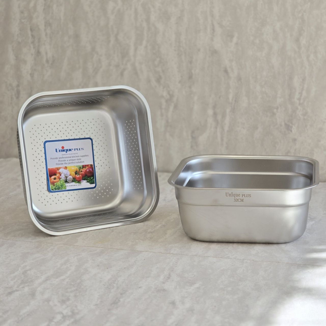 این محصول شامل آبکش و لگن نقرهای از جنس استیل مقاوم است که برای هر آشپزخانهای مناسب میباشد. هر سایز شامل یک آبکش و یک لگن هماهنگ بوده و طراحی آنها به گونهای است که دوام بالا و مقاومت در برابر زنگزدگی را تضمین میکند.