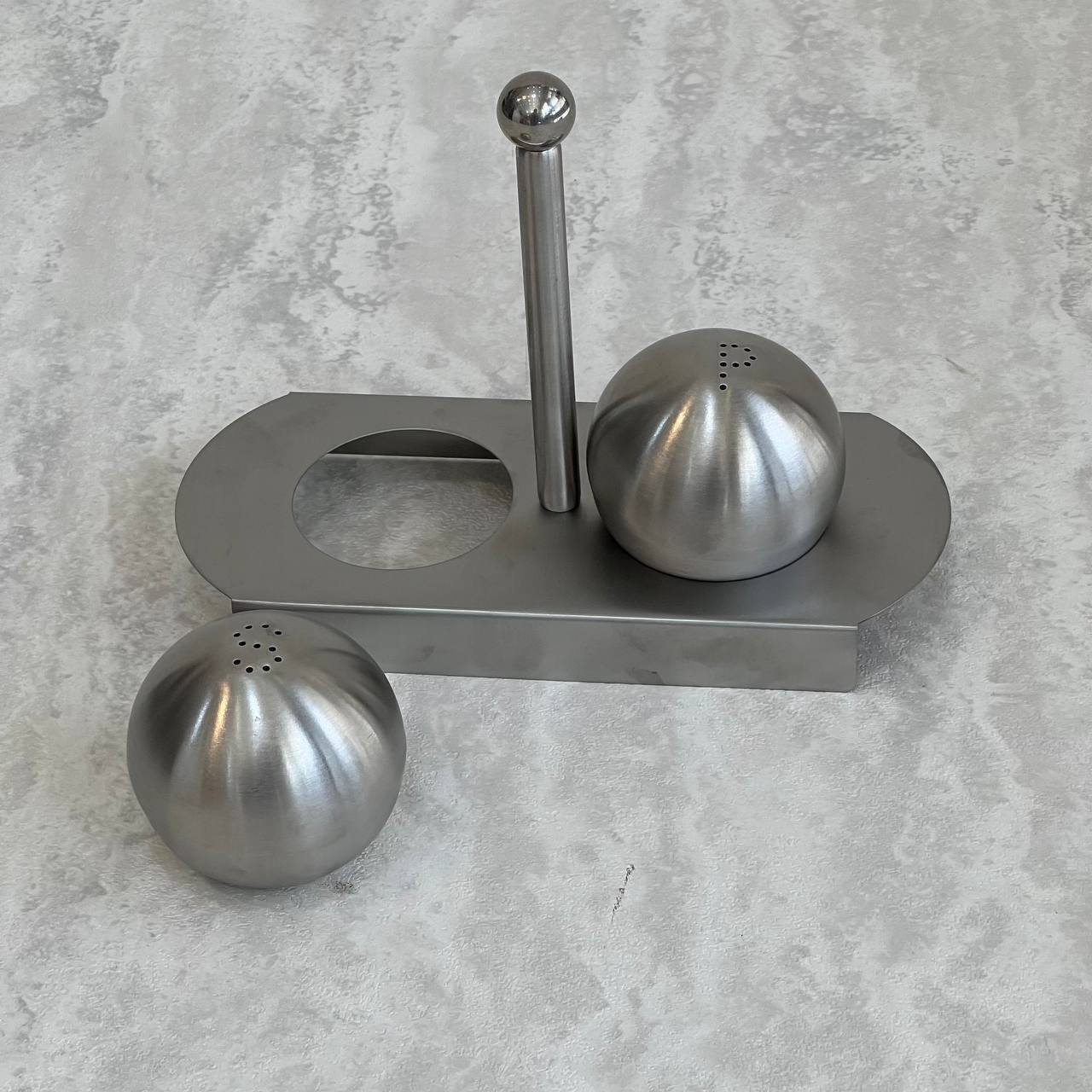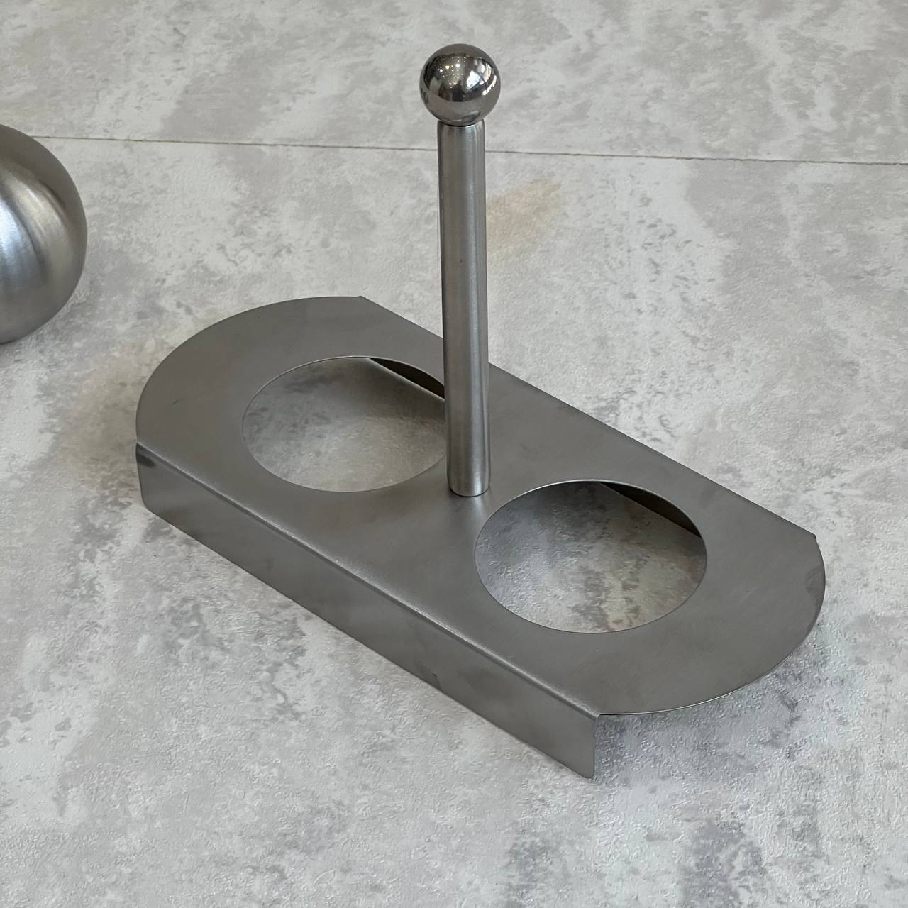 ست نمکدان استیل توپی استند‌دار با طراحی مدرن و براق خود، جلوه‌ای شیک و مینیمال به میز غذا یا شلف آشپزخانه می‌بخشد. این ست شامل دو عدد نمکدان توپی از جنس استیل درجه یک به همراه استند مخصوص است که علاوه بر زیبایی، استفاده و جابه‌جایی آن را آسان‌تر کرده است. این نمکدان‌های کوچک و فانتزی برای استفاده روزمره، پذیرایی مهمانان یا حتی تزئین میز غذاخوری گزینه‌ای ایده‌آل هستند. جنس باکیفیت استیل آن باعث می‌شود در برابر زنگ‌زدگی و تغییر رنگ مقاوم باشد و ظاهر براق و لوکس خود را حفظ کند.