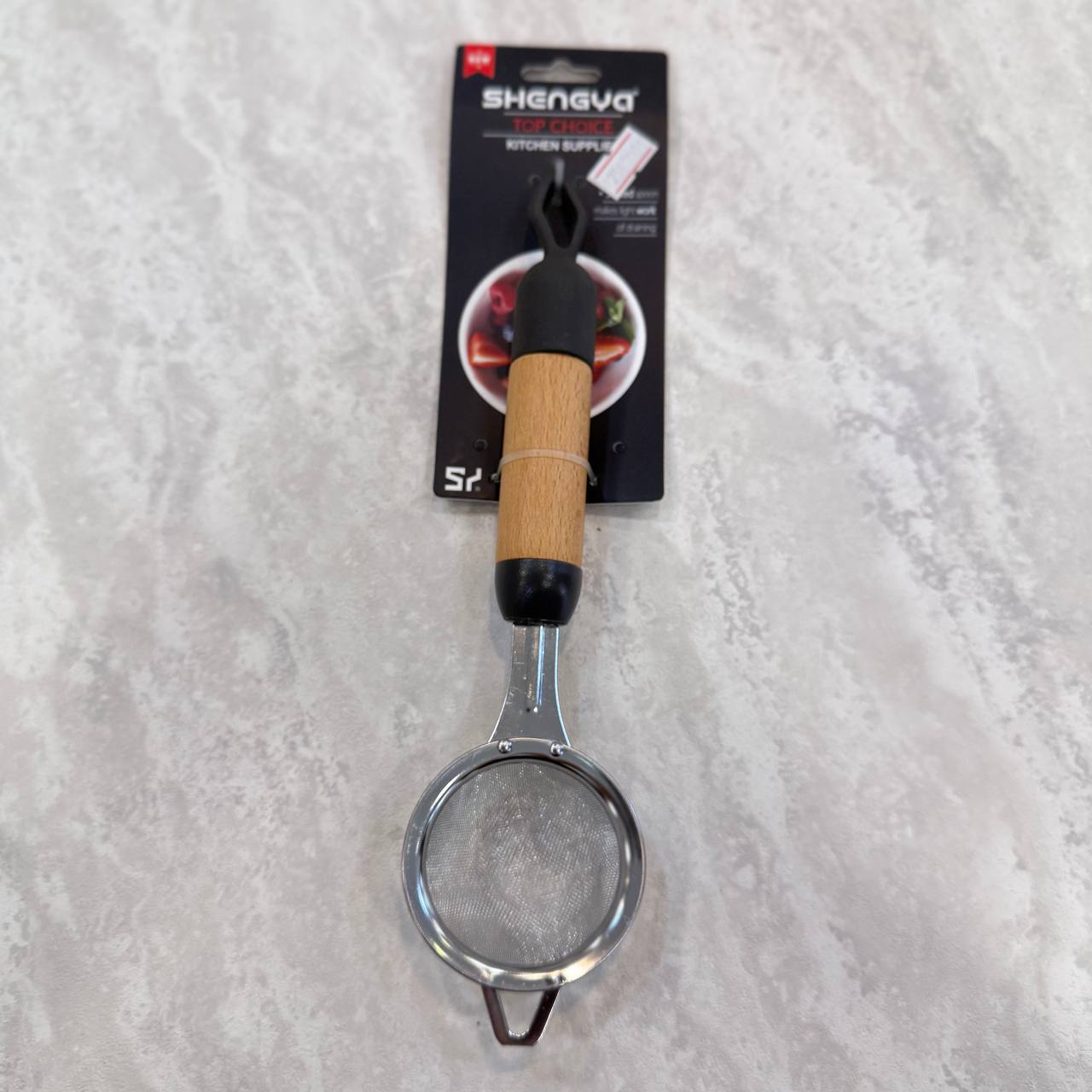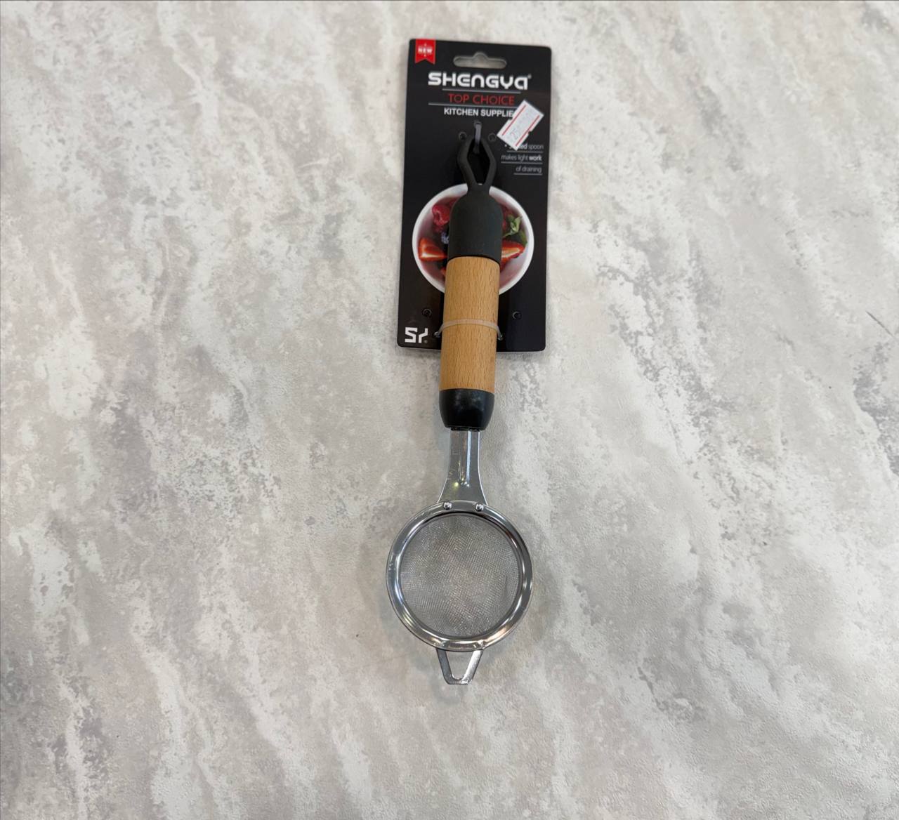 صافی با دسته بامبو و سیلیکون شنگیا ابزاری کاربردی و زیبا برای آشپزی است که ترکیبی از استیل مقاوم، دسته بامبو و جزئیات سیلیکونی دارد. طراحی ارگونومیک و خوشدست دسته، کار با صافی را راحت و ایمن کرده و امکان صاف کردن انواع مواد غذایی، از سبزیجات گرفته تا میوهها و حبوبات، را به سادهترین شکل ممکن فراهم میکند.