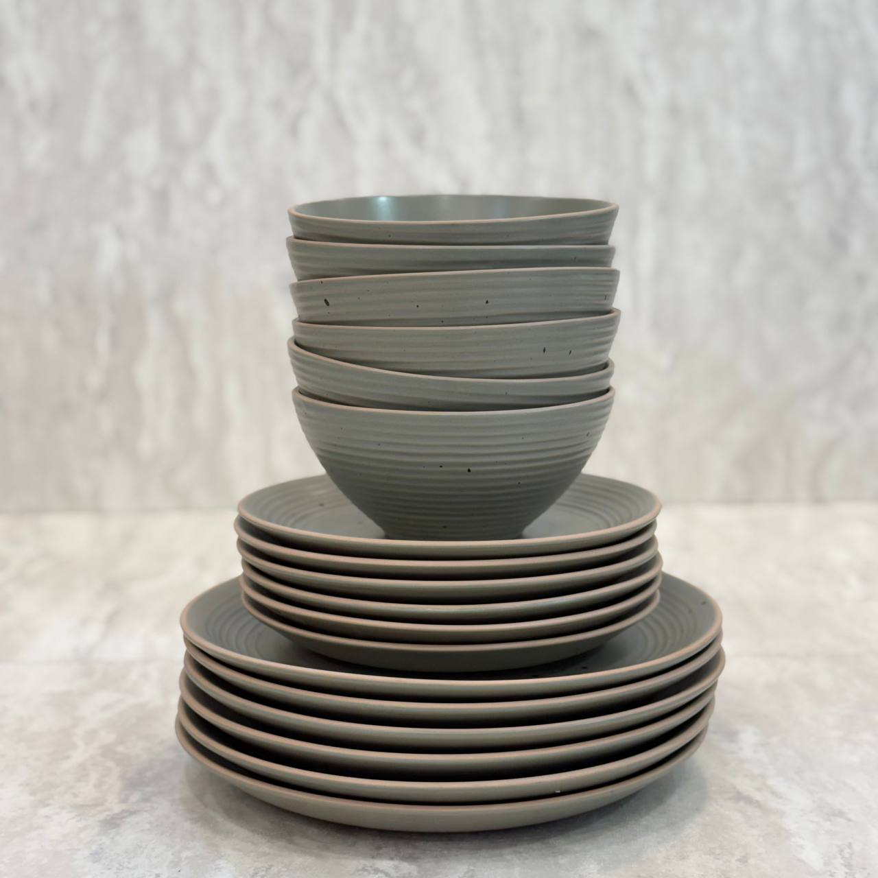 سرویس ۱۸ پارچه روستیک سبز با طراحی شیک و رنگ سبز آرامبخش، جلوهای دلنشین و طبیعی به میز غذاخوری شما میبخشد. این سرویس شامل بشقابها، پیشدستیها و خورشخوریهایی با ابعاد متنوع است که از سرامیک باکیفیت ساخته شده و دوام و مقاومت بالایی ارائه میکند. طراحی روستیک آن حس صمیمیت و گرما را در هر وعده غذایی منتقل میکند.