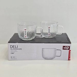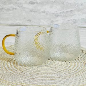 ماگ پیرکس خمره ای دسته طلایی راه راه