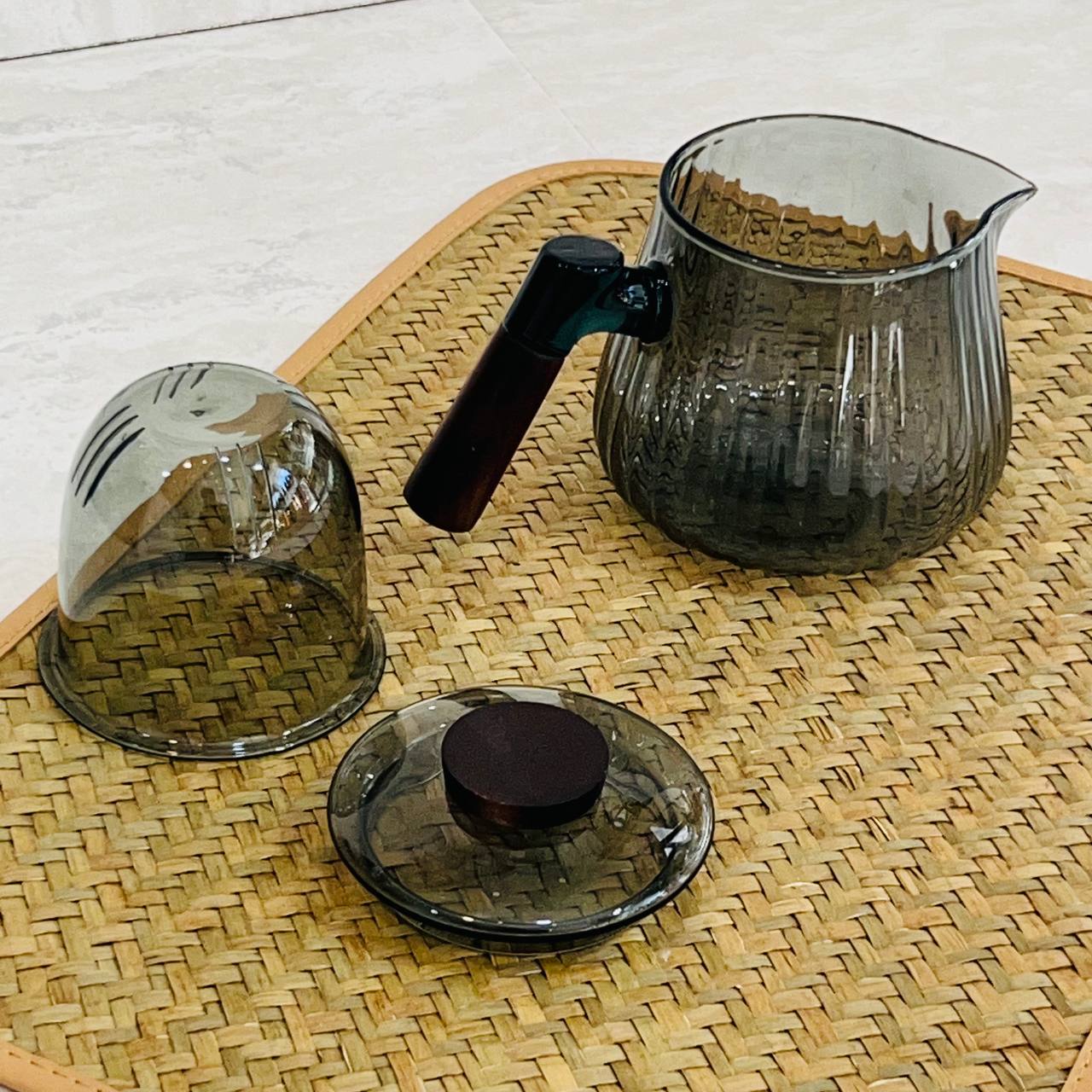 قوری پیرکس دودی نوردیک دسته چوبی