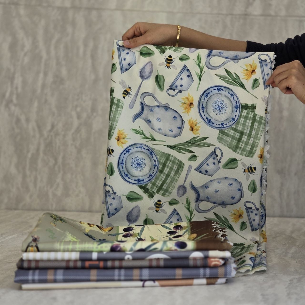 این مدل در شش طرح مختلف عرضه شده و به‌راحتی با انواع سبک‌های دکوراسیون—ازکلاسیک تا مینیمال—هماهنگ می‌شود. جنس مقاوم و قابل شست‌وشوی آن باعث می‌شود پس از هر بار استفاده ظاهری تمیز و مرتب داشته باشد. این رومیزی انتخابی حرفه‌ای برای ایجاد نظم بصری، پوشش کامل سطح میز و افزودن جلوه‌ای گرم و دلنشین به فضای پذیرایی یا آشپزخانه است.